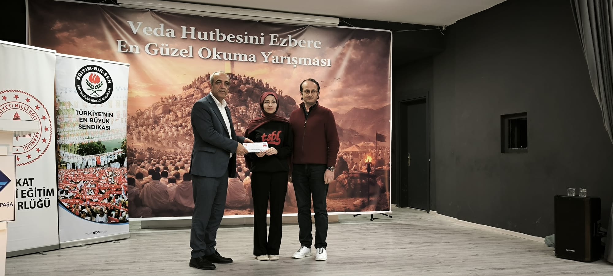 VEDA HUTBESİNİ EZBERE OKUMA YARIŞMASI İLÇE FINALİ HEYECANI İl Milli Eğitim Müdürlüğü, İl Müftülüğü ve Eğitim Bir Sen 1 Nolu Şubesinin işbirliği ile Lise öğrencileri arasında düzenlenen Veda Hutbesini Ezbere Okuma Yarışması merkez ilçe finali büyük bir coşkuyla gerçekleştirildi. Sadece bir yarışma için değil; insanlık tarihinin en anlamlı hitaplarından birini yeniden hatırlamak, onun evrensel mesajlarını genç yüreklerin diliyle yeniden dinlemek için bir araya gelindi. Bundan asırlar önce, Arafat’ta yüz bini aşkın sahabeye hitap eden Peygamber Efendimiz Hz. Muhammed (s.a.v.), Veda Hutbesi’nde insanlığın ortak vicdanına seslenmiş; adaletin, merhametin, kardeşliğin ve insan onurunun temel ilkelerini tüm insanlığa emanet etmiştir. O gün söylenen sözler, yalnızca o kalabalığa değil; çağları aşarak bugünlere, hatta kıyamete kadar gelecek tüm insanlığa yöneltilmiş bir çağrı olmuştur. Veda Hutbesi; insanın canının, malının ve onurunun dokunulmazlığını ilan eden; haksızlığı reddeden; kardeşliği yücelten; kadın haklarını hatırlatan; emanet bilincini ve sorumluluğu öğreten eşsiz bir insanlık beyannamesidir. Bu yönüyle sadece bir hutbe değil, aynı zamanda insanlık için evrensel bir ahlak ve hukuk manifestosudur. Gençlerimizin bu kutlu emaneti öğrenmesi, anlaması ve geleceğe taşıması bizler için büyük bir umut ve gurur vesilesidir. Çünkü biliyoruz ki bir toplumun geleceği; değerlerini bilen, kökleriyle bağ kurabilen ve medeniyet mirasını yaşatabilen gençlerle şekillenir. Bu yarışma ile bu güzel atmosferde; ilimle, edep ve saygıyla yetişen gençlerimizin bu anlamlı gayretine tanıklık edildi. Komisyon tarafından puanlama yapılarak dereceler belirlendi. Öncelikle bu yarışmaya katılan öğrencilerimizi yüreklendiren ve yarışmaya katılmalarını teşvik eden danışman hocalarımızı, dereceye giren ve bu yarışmaya katılan tüm öğrencilerimizi tebrik eder başarılar dileriz.